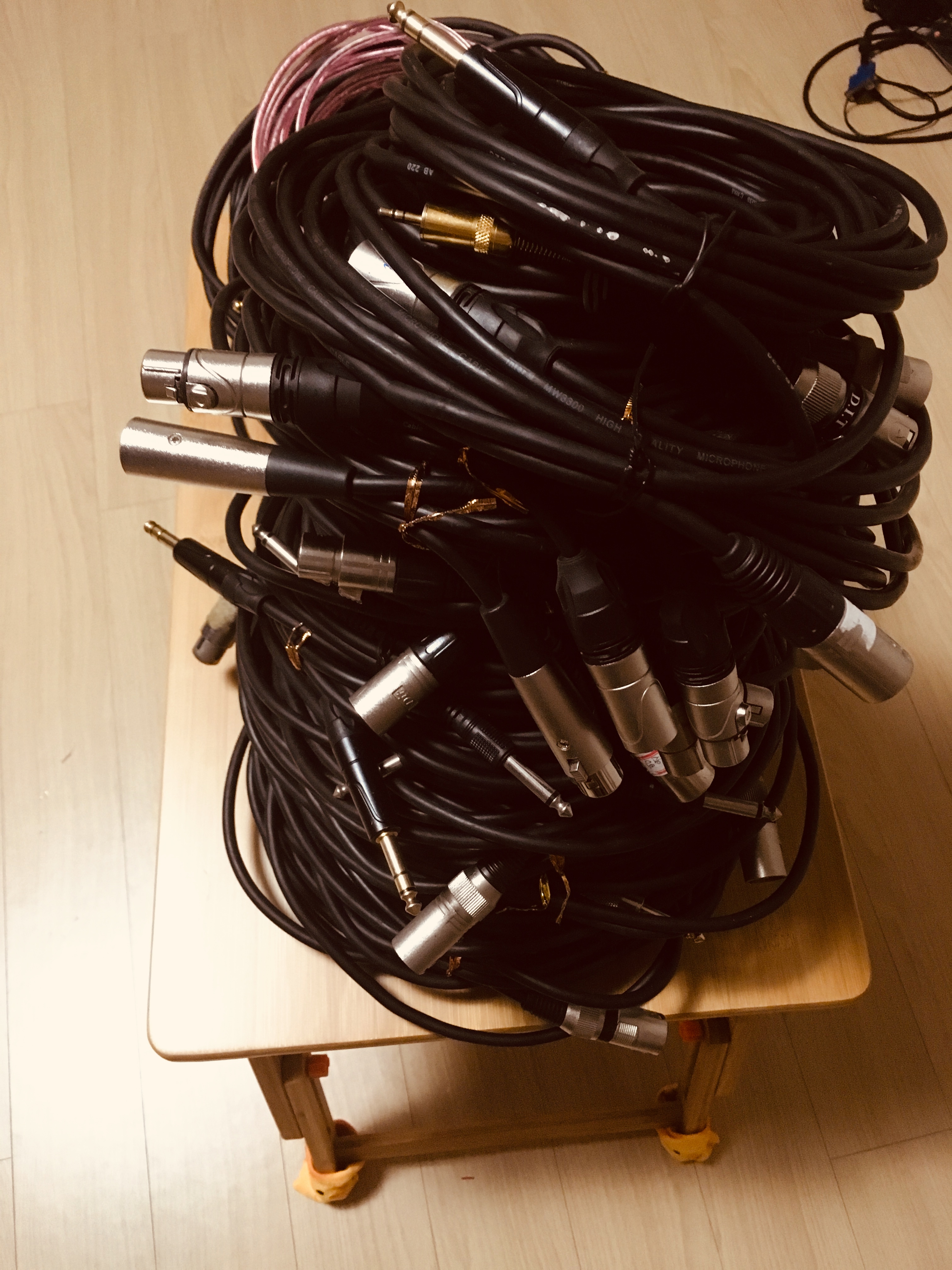 그동안 계속 벼르고 있던 작업을 했다. 교회에서 여기저기 방치되어 있는 오디오 케이블을 모아봤다. 교회 규모에 비해서 꽤 많은 케이블이 나왔다. 찬양단에게 물어보니 대부분이 고장난 케이블이라고 하더라. 집으로 가져와 고쳐보기로 하고 들고와 작업을 시작했다.